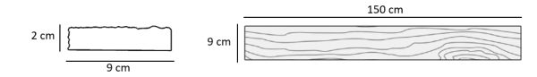 Ağaç malzeme yüzeyinde enine yönde testere izleri bulunur. Eski dönemlerde, ilkel tekniklerle üretilmiş gibi otantik bir sonuç verir.