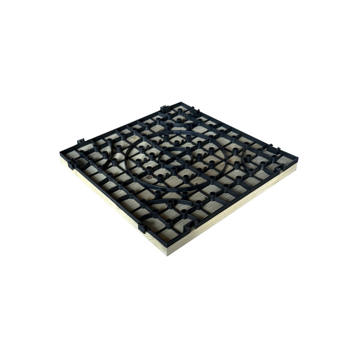 * Ürünün alt yüzeyinde 30x30cm ölçülerinde 1cm kalınlığında geçmeli plastik levha kullanılmıştır ve ahşaplar vida ile montaj yapılmıştır.